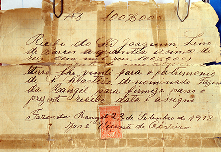 Documento da família de Antenor e Antonia Marcelino comprova que Joaquim Lino de Barros comprou o terreno para o patrimônio de São Sebastião, em 1918, que deu origem a Ipiguá.