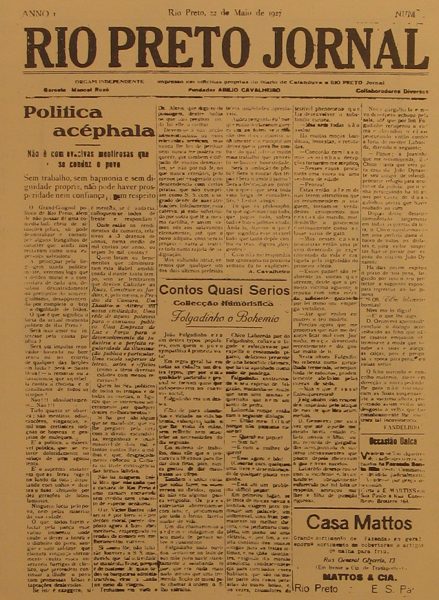 Circula em outubro de 1926, o semanário Rio Preto Jornal, fundado por Abílio Cavalheiro e Manoel Roxo.