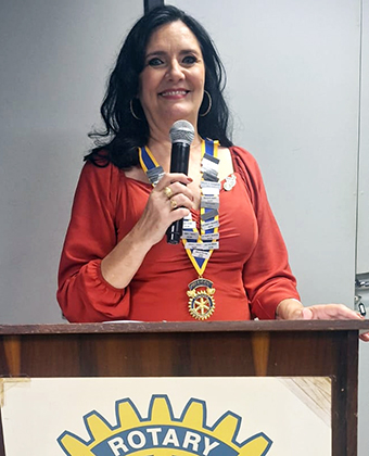 A presidente do Rotary Club Bady Bassitt e seu colar de presidentes, em foto de Nelson Gonçalves, publicada da Folha Regional.
